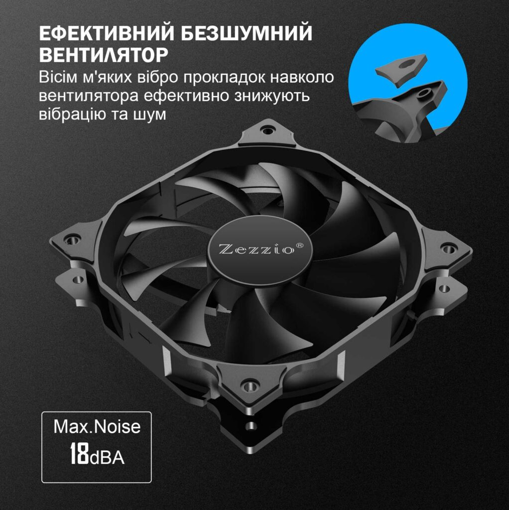 Вентилятор оснащений силіконовими подушками в кожній його стороні, які значно знижують шум від вібрації вентилятора на високій швидкості обертання крильчатки. При використанні такої технології вентилятор легко адаптується до різних сценаріїв обертання і ефективно покращує потік повітря